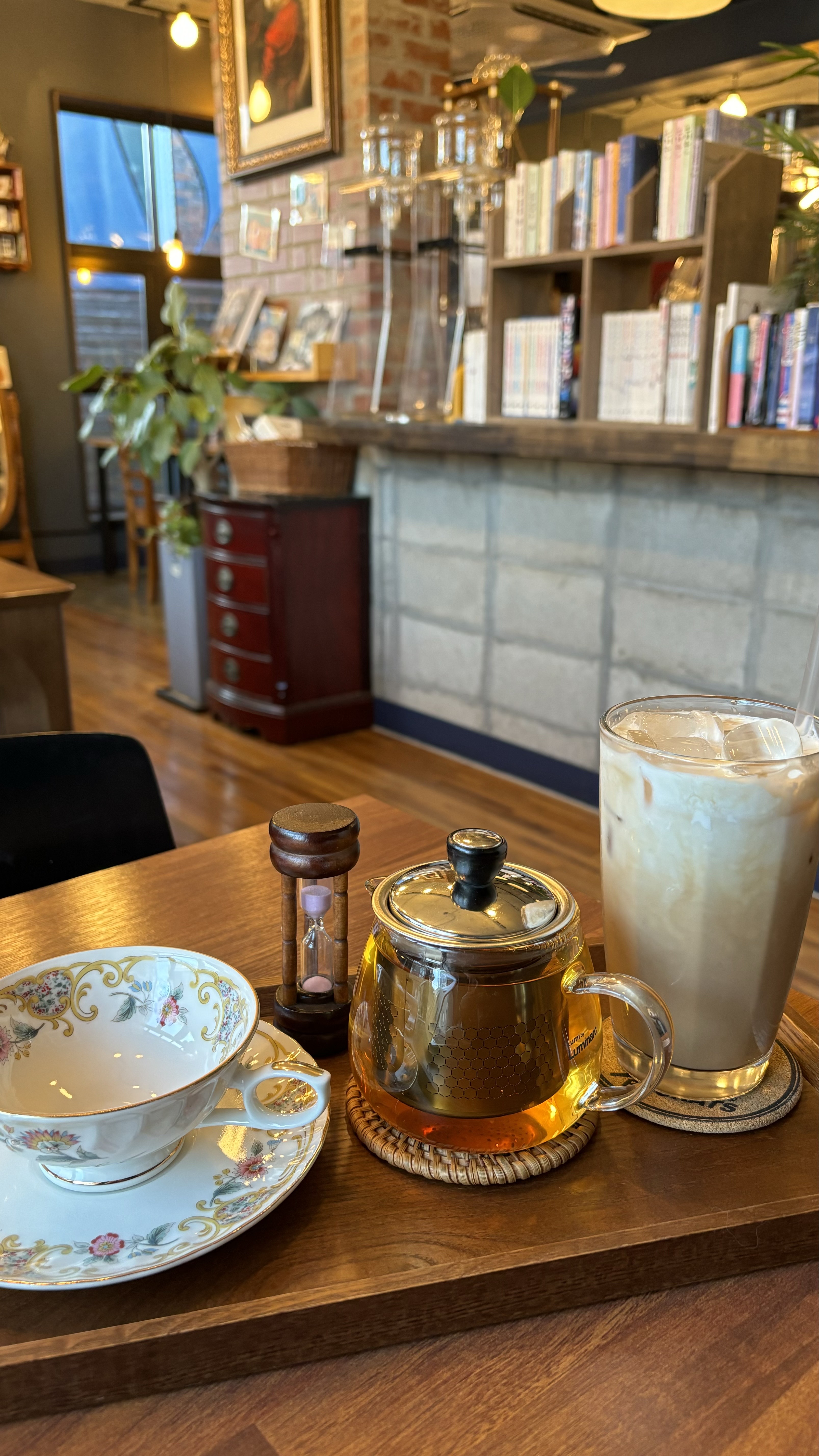 재방문했을 때는 처음 방문했을 때랑 다른 메뉴를 먹어보고 싶어서 저는 수제 밀크티, 남자친구는 디저트아일랜드를 마셨습니다. 사진에 나와있는 것처럼 찻잔이 함께 나오고, 모래시계가 다 떨어지면 잔에 따라 마시라고 설명해 주셨습니다. 찻잔이 너무 고급지지 않나요? 대접받는 느낌이 들었습니다. 예쁜 찻잔에 따라서 고급스럽게 먹는 남자친구.. 하하 남자친구도 이런 곳은 처음이라 너무 좋아했습니다. 매장인테리어를 둘러보면 고양이와 매장에 진심이신 사장님의 마음을 읽을 수 있습니다.
