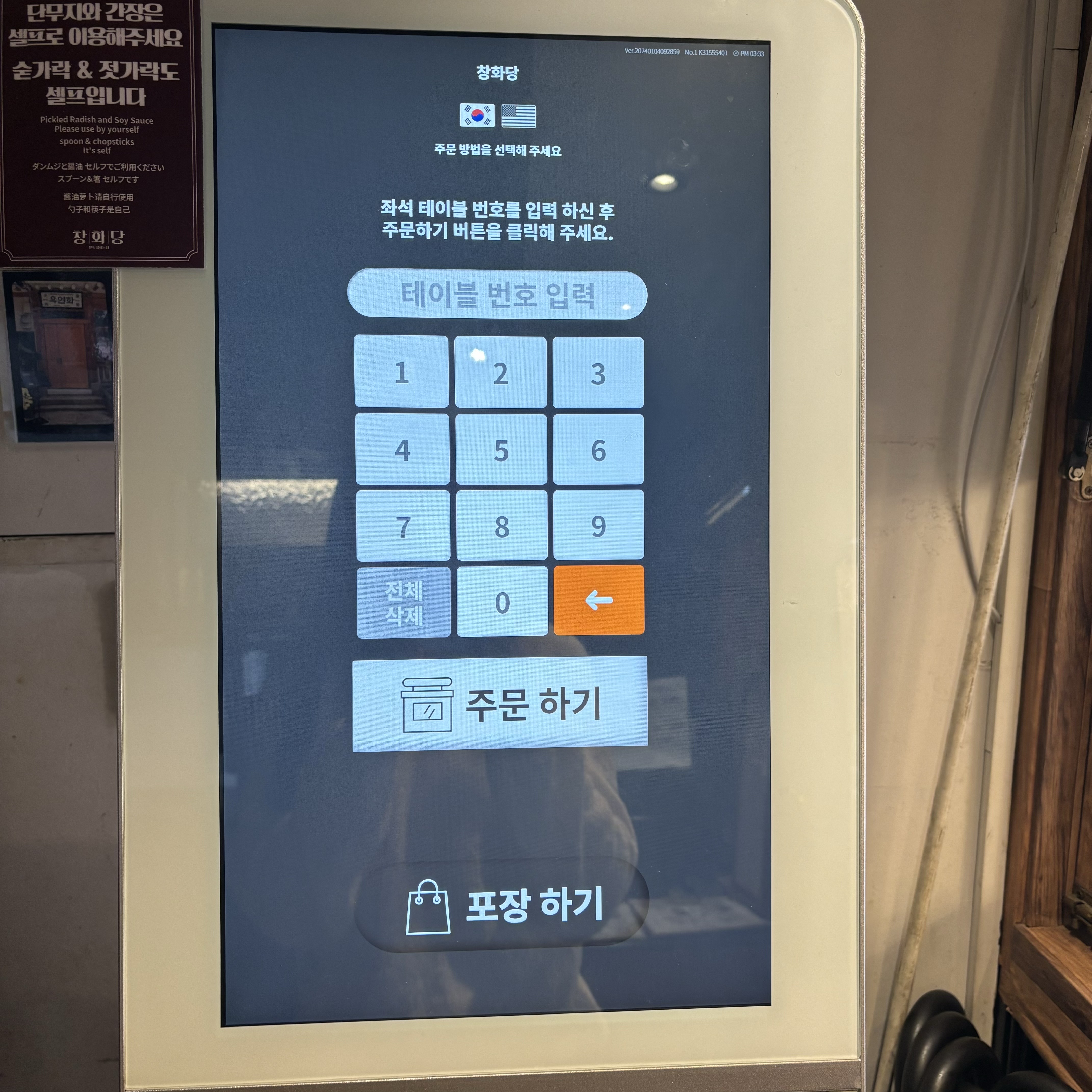 매장에 들어가면 테이블 번호를 알려주시고, 키오스크로 주문하면 된다고 설명해 주십니다.