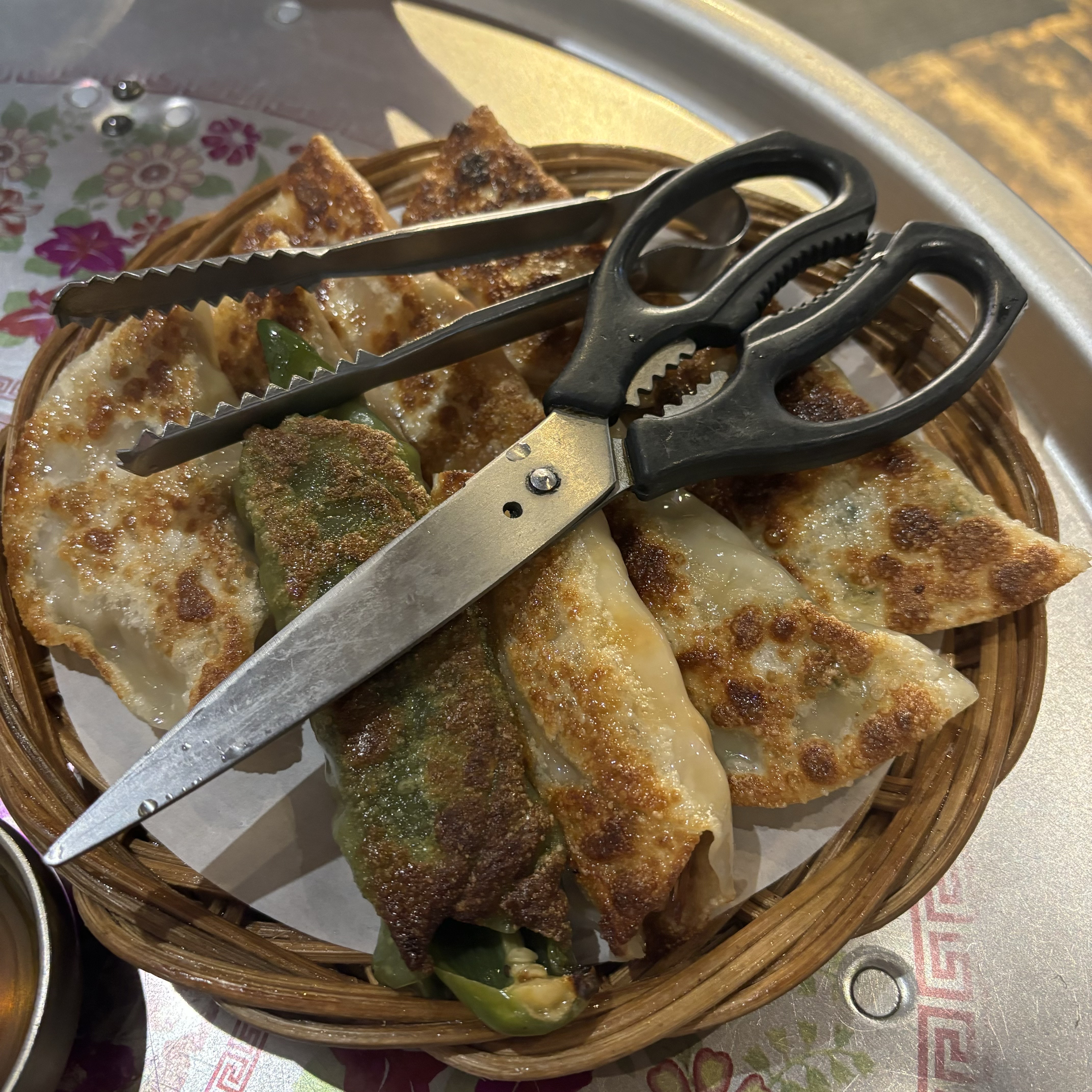 가위와 집게를 같이 주시기 때문에 집게를 이용하여 만두를 먹기 좋게 잘라주었습니다.