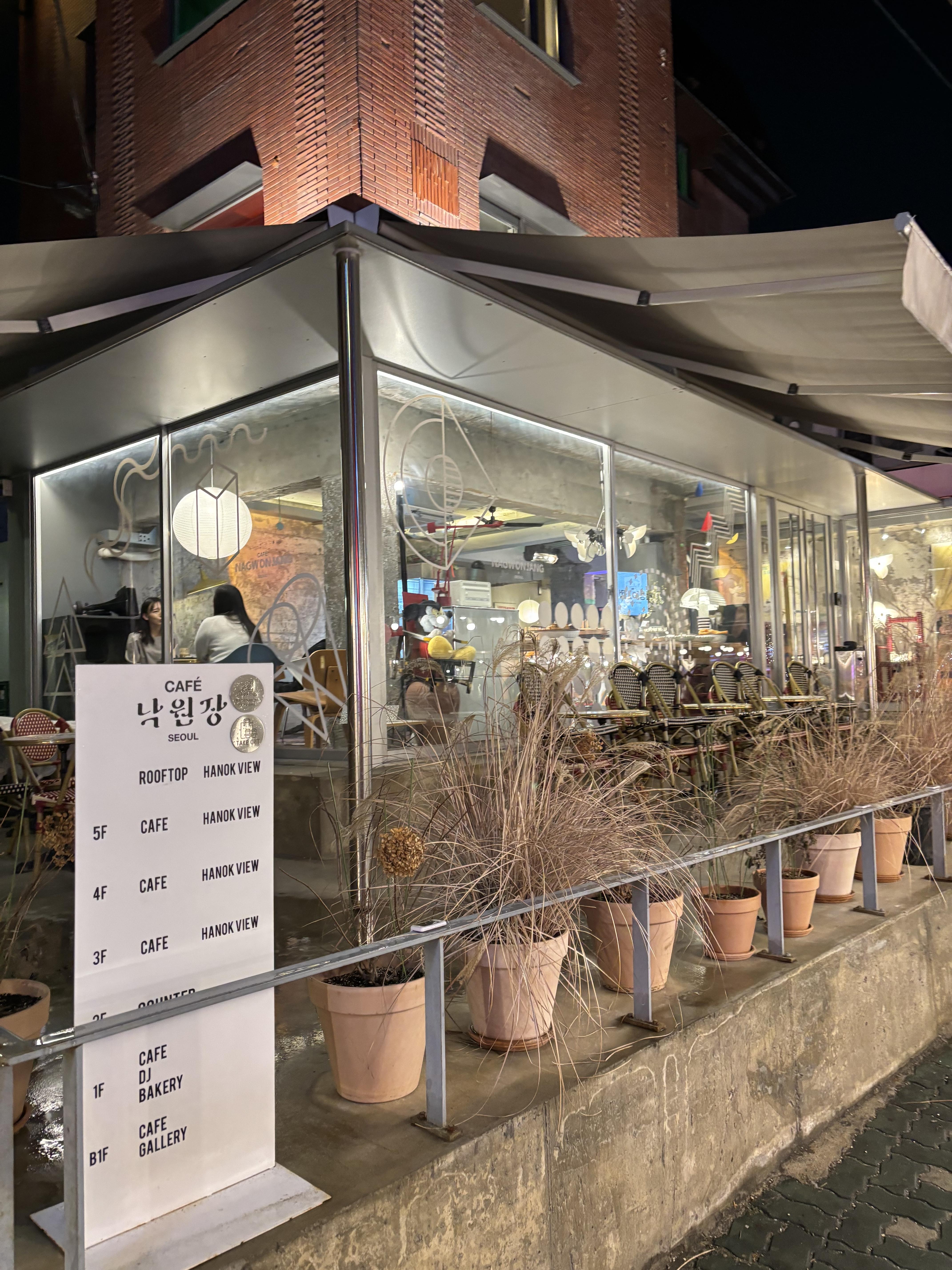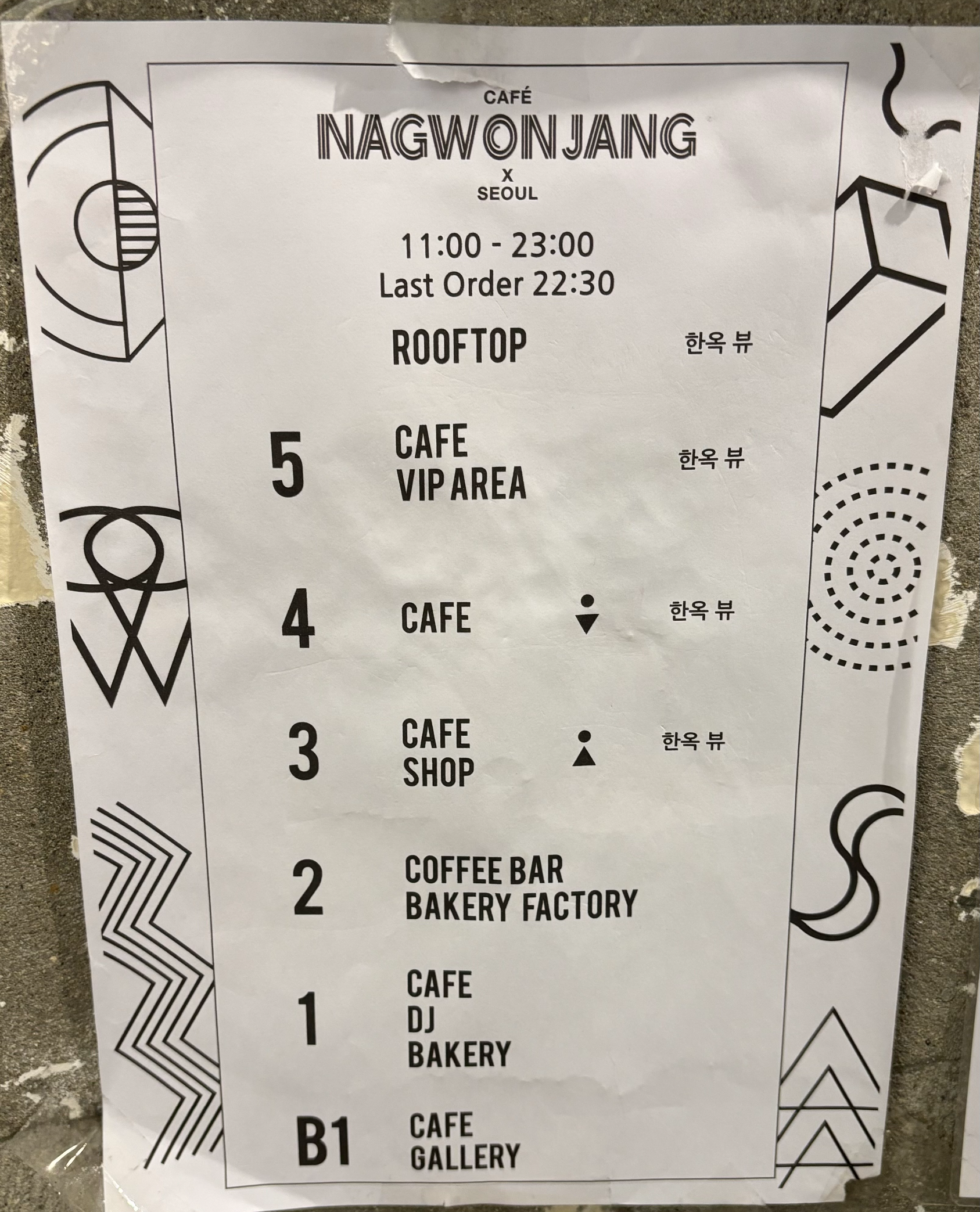 낙원장은 익선동으로 들어가면 바로 보이기 때문에 쉽게 찾으실 수 있습니다. 밖에서 봤을 땐 1층만 있는 카페인 것처럼 보이는데, 지하 1층부터 5층까지 있는 대형카페입니다. 주말이라 그런지, 좌석이 많음에도 만석이었습니다. 그래도 자리가 금방금방 빠져서 오래 기다리진 않았습니다.