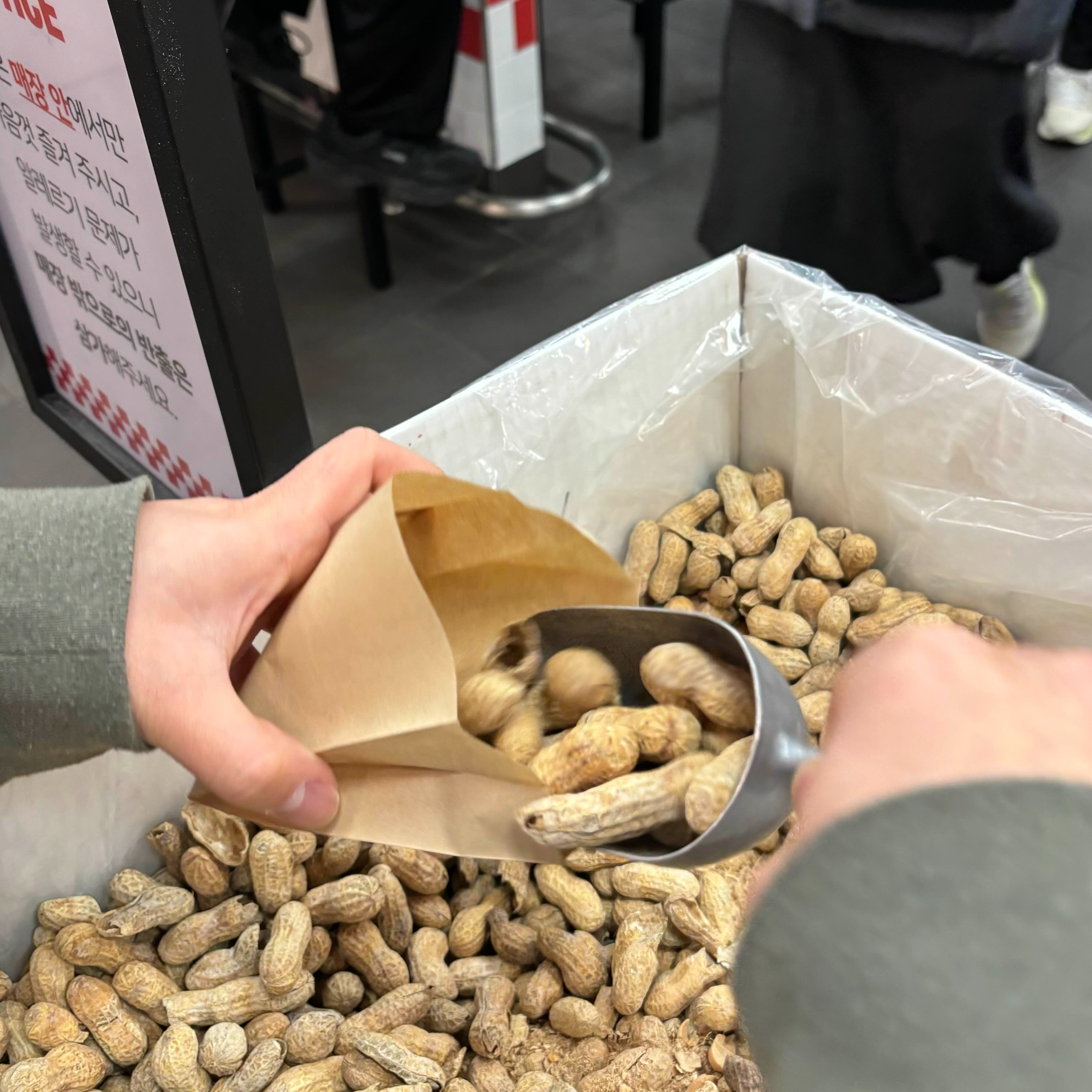 스쿱을 이용해서 땅콩을 담았고, 기다리는 동안 먹으면서 기다릴 수 있었습니다.