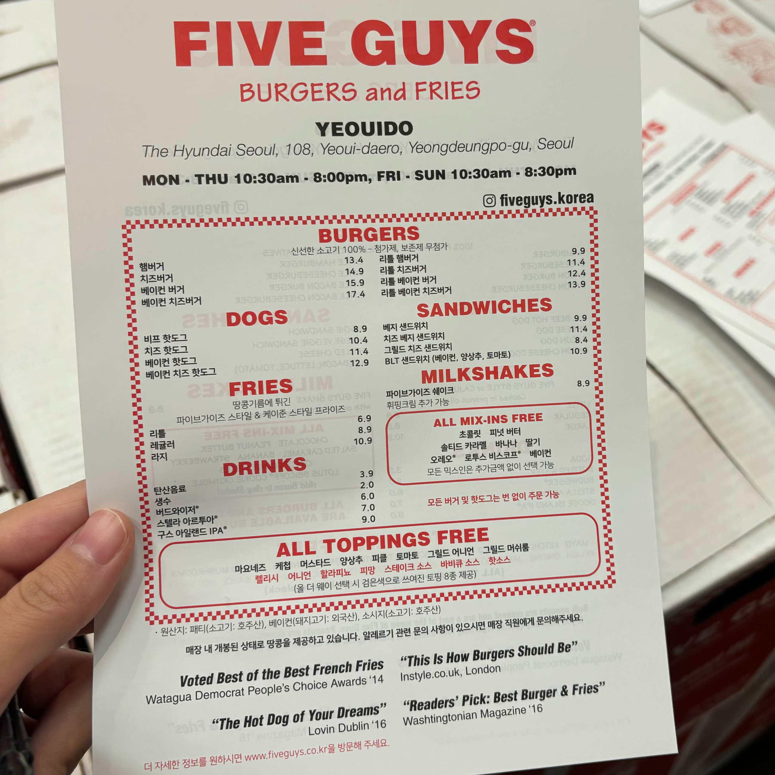 이상 더현대맛집, 햄버거 맛집 파이브가이즈 내돈내산 후기였습니다~