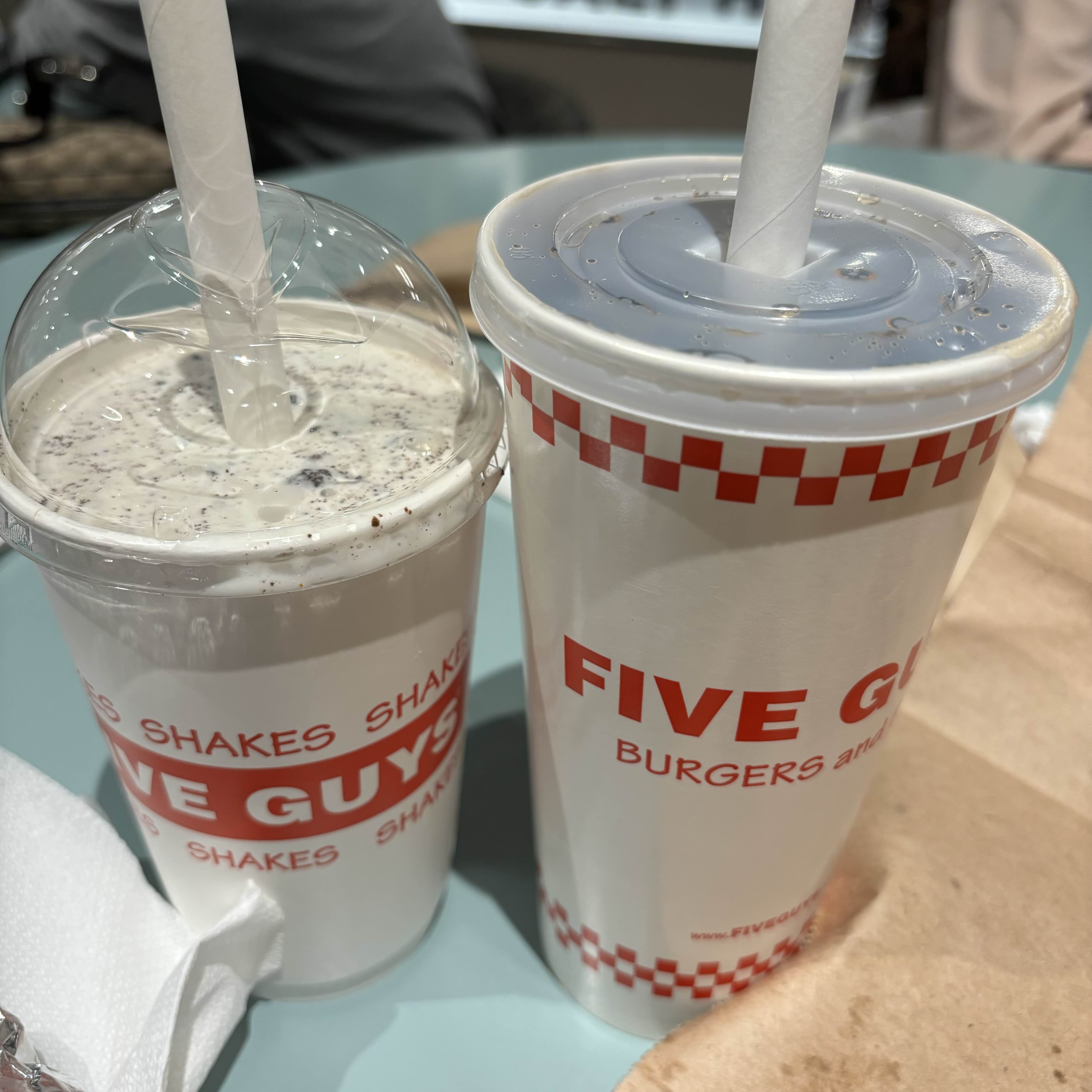 오레오 밀크셰이크와 탄산음료입니다. 탄산음료 컵이 셰이크 컵보다 커서 푸짐하게 마실 수 있었습니다.