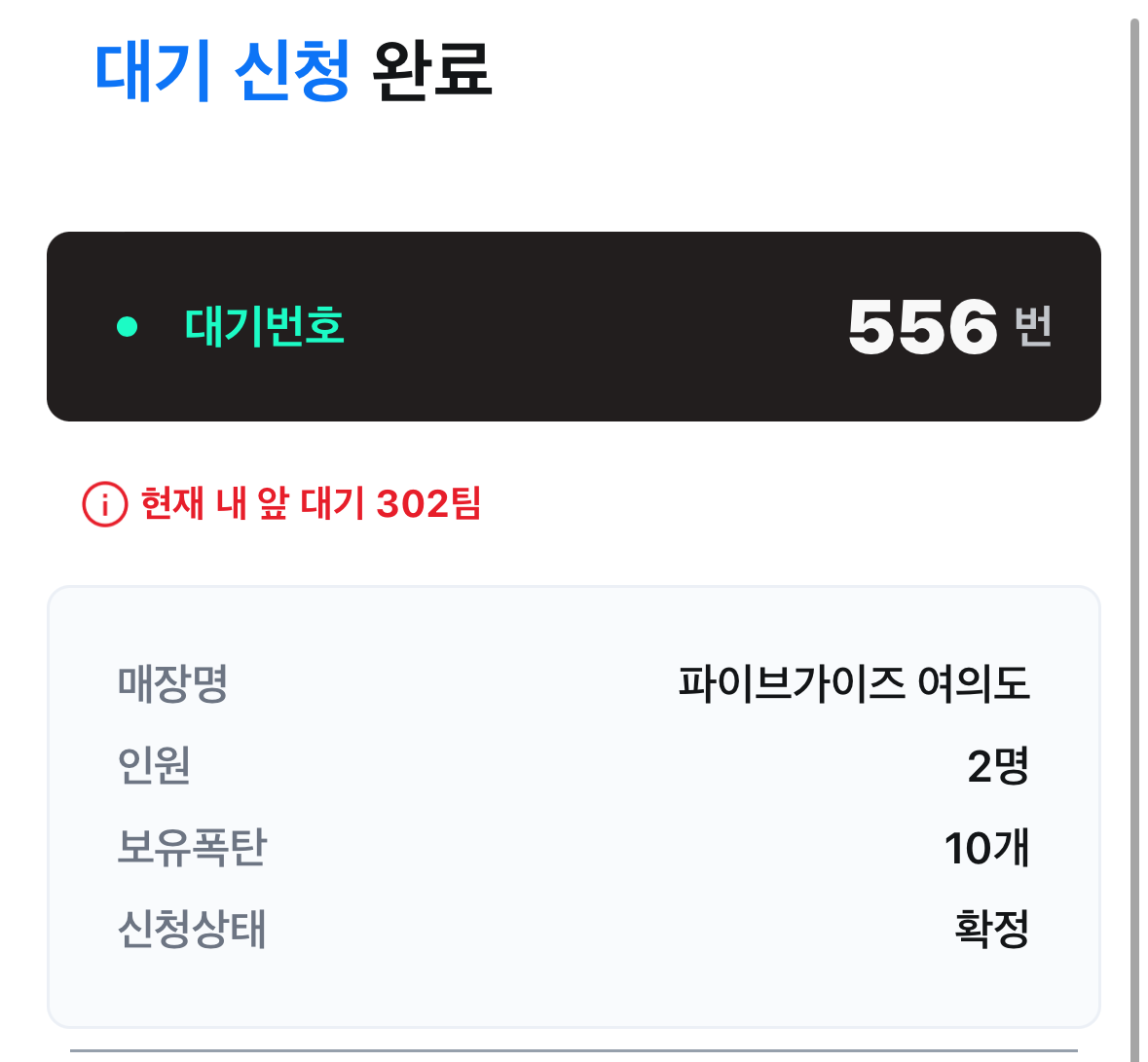 주말 오전 11:23 기준으로, 제 앞에 대기팀이 302팀이나 있었습니다! ^_^