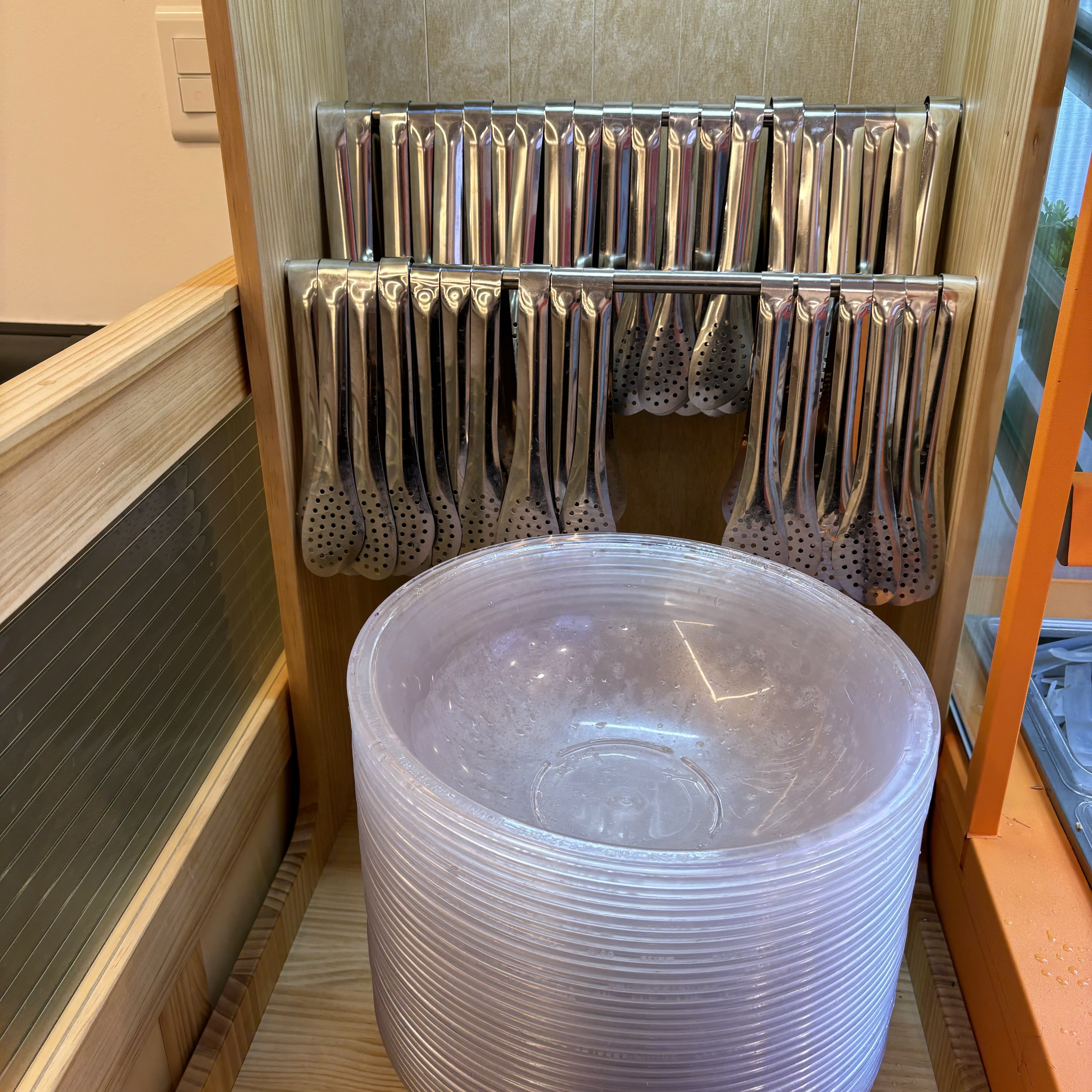 저울에 올려둔 그릇을 위쪽 사진에 올려두시면 직원분이 맛있게 조리해 주십니다.