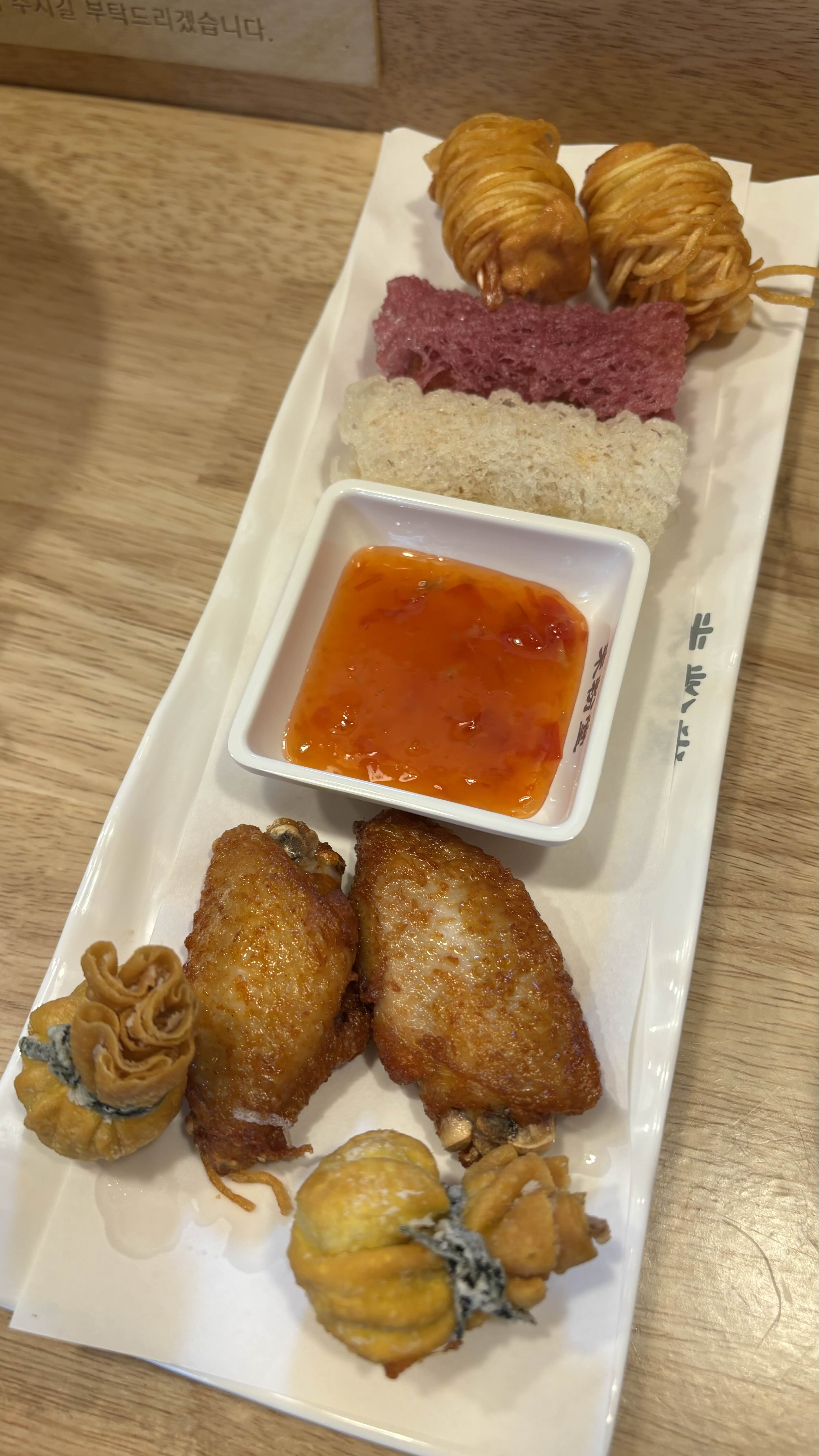 추가로 시킨 모둠전식입니다. 버펄로윙과 짜조 등이 모둠으로 준비되어 나오기 때문에 나눠먹기 좋았습니다.