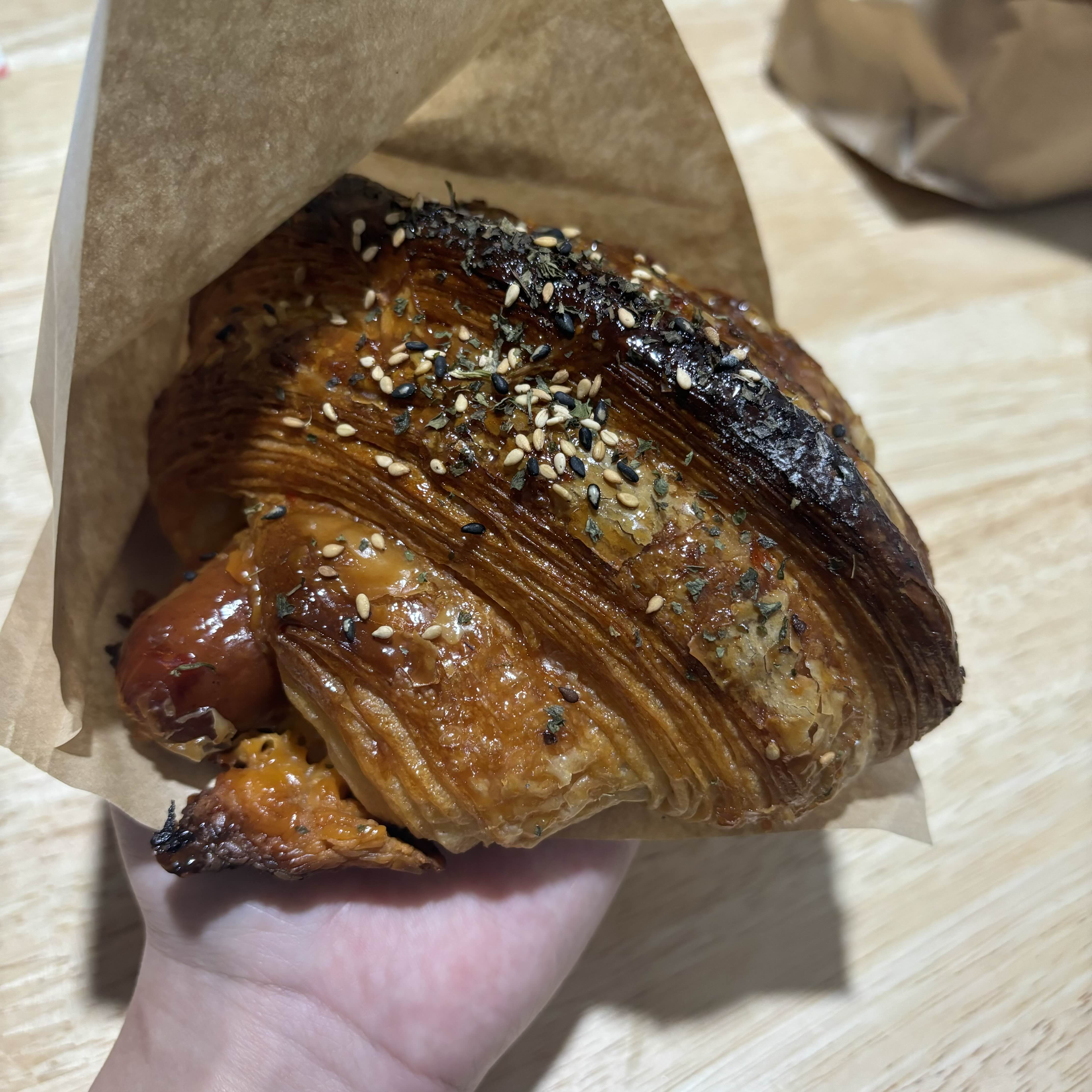크로와상 크기 무엇… 엄청 커요…! 소시지도 크고 맛있었습니다:)