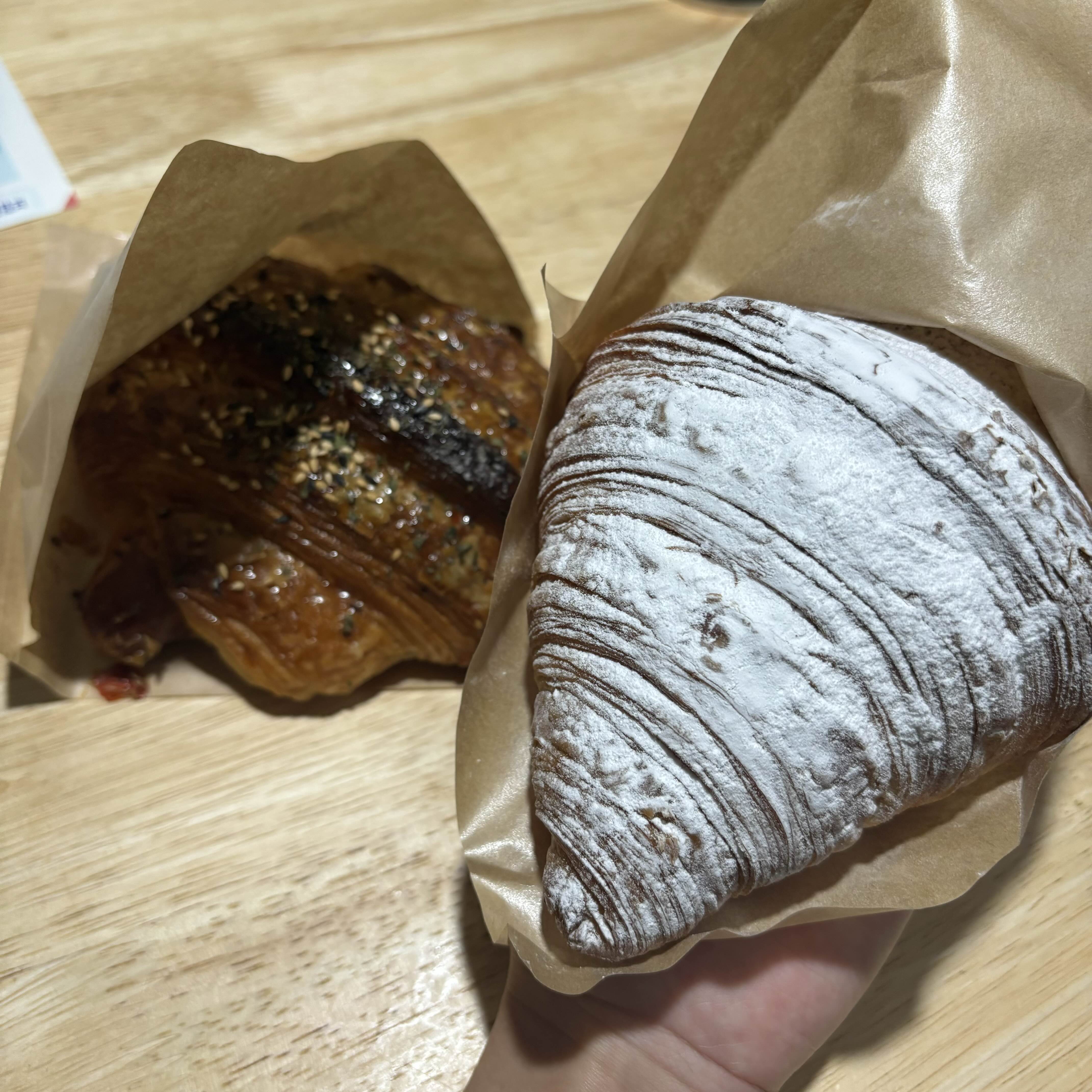 저는 생크림 크루아상과, 소시지 크루아상을 구매했습니다. 욕심부리지 않고 두 개만 구매했는데, 기다리는 사람들은 많이 사가시더라고요..!