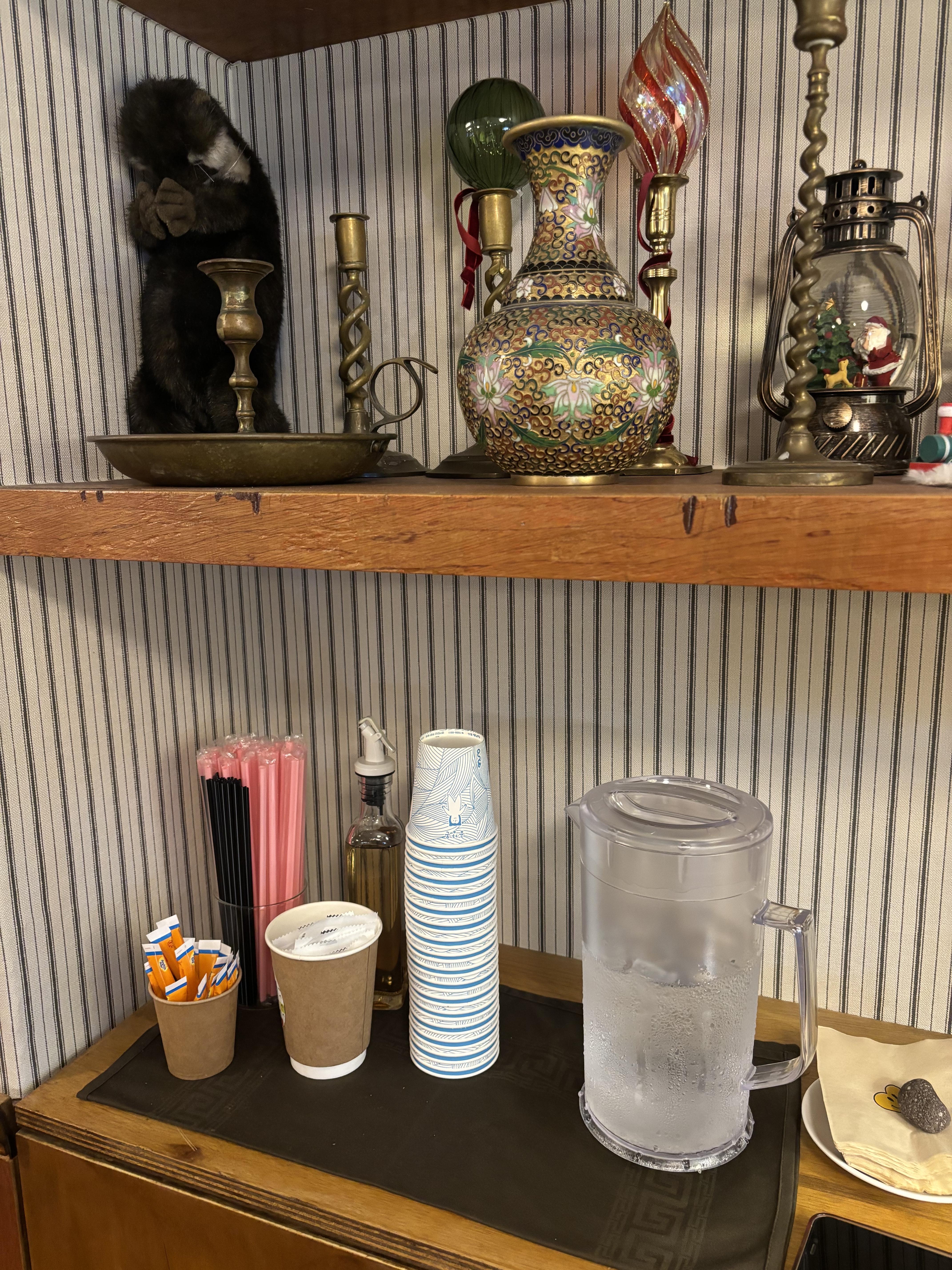 컵이랑 설탕, 빨대 물은 셀프로 이용하실 수 있습니다.